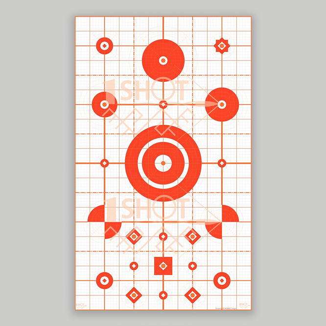 - Taikinį sudaro 22 atskiri taikymosi taškai, kurie leidžia atlikti visos dienos šaudymo treniruote, skirtingais atstumais į vieną taikinį.