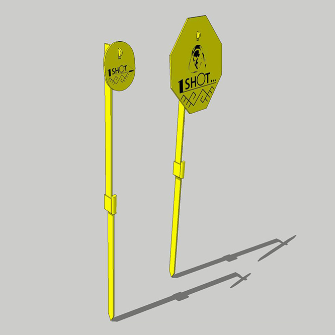 - Komplektą sudaro 2 surenkamos kojos (1m ilgio), plieno taikinys (45x75x1) bei plieno taikinys (20x25x1)